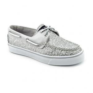 Breathable and comfortable, these silver glitter Sperry Top-Siders will add a sparkle to any outfit!